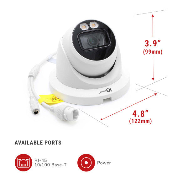 IC Realtime's latest 4MP IR color video technology is now available in a vandal-resistant and versatile eyeball dome or "turret dome" design. Our new IPMX-E40F-W1-LED is a 4MP eyeball network camera built with our new wide aperture 2.8mm lens with a 103° wide FOV, combined with our most advanced Starlight video sensor, a wide-spectrum LED light to dependably deliver 4MP (2688 × 1520) full-color night vision. You heard right - full color 24/7 - no more monochromatic night images!
