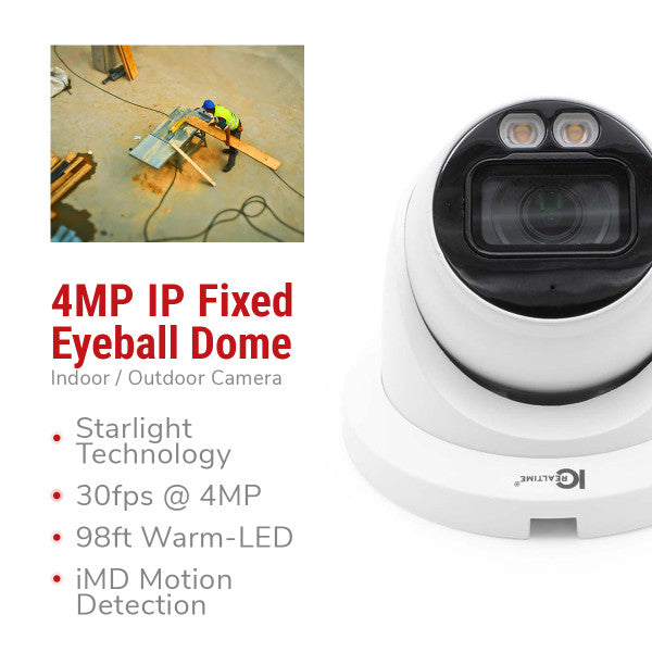IC Realtime's Max Series cameras have always been our dealer/integrator's favorite choice for industrial, commercial, and residential camera installations. These new "All color / All the time" models are the series' next step in camera evolution. With its eyeball design, 24/7 Starlight color, built-in mic, FlexSmartAI features, and IC Realtime's 10 Year Limited Warranty, the IPMX-E40F-W1-LED Max Series camera is an ideal eyeball dome choice for your next IP security system installation.